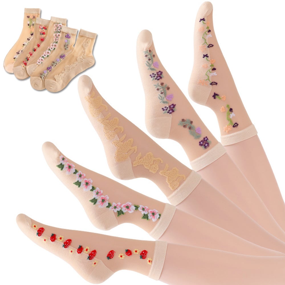 đž10 par strumpor i glas med blommönster i livfulla fĂ€rgerđžEleganta blommiga strumpor för alla tillfĂ€llen