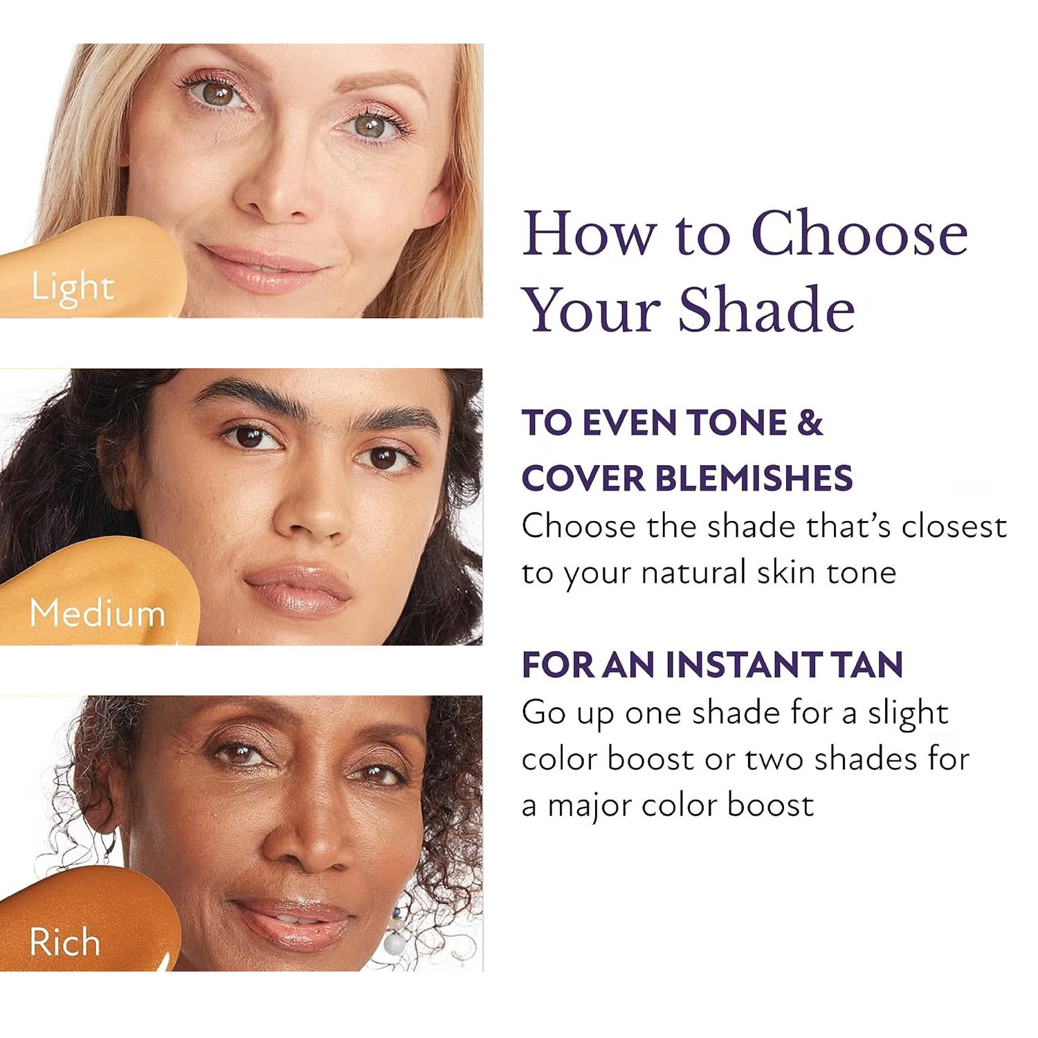 • VĂ€lj en nyans som matchar din hudton för ett naturligt resultat eller gĂ„ upp en nyans för en bronsglans! 🌞